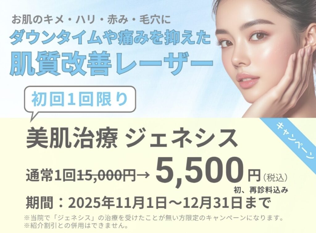 今回、ライムライトとジェネシスというシワと毛穴、コラーゲン生成に効く施術も同時にしていただきました。